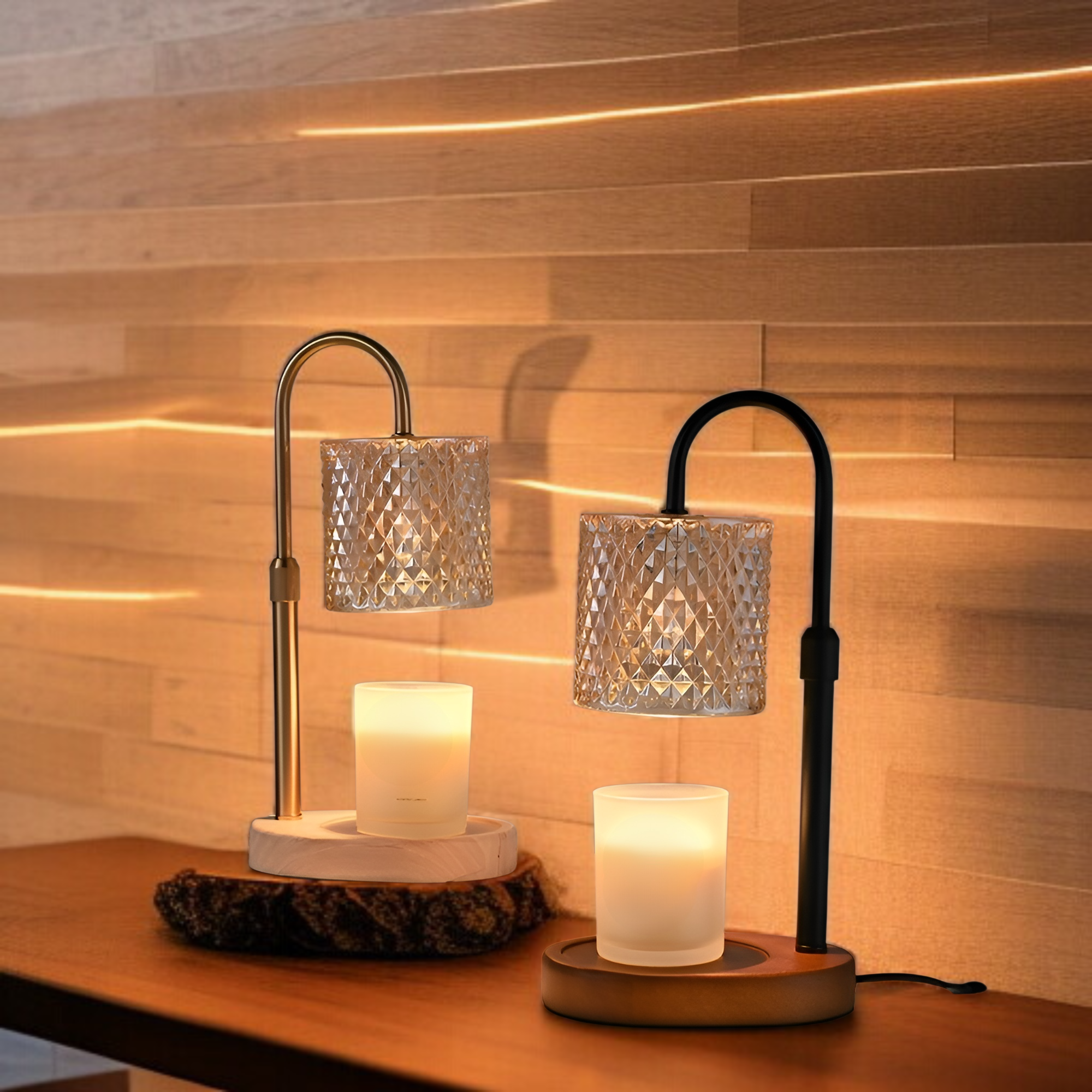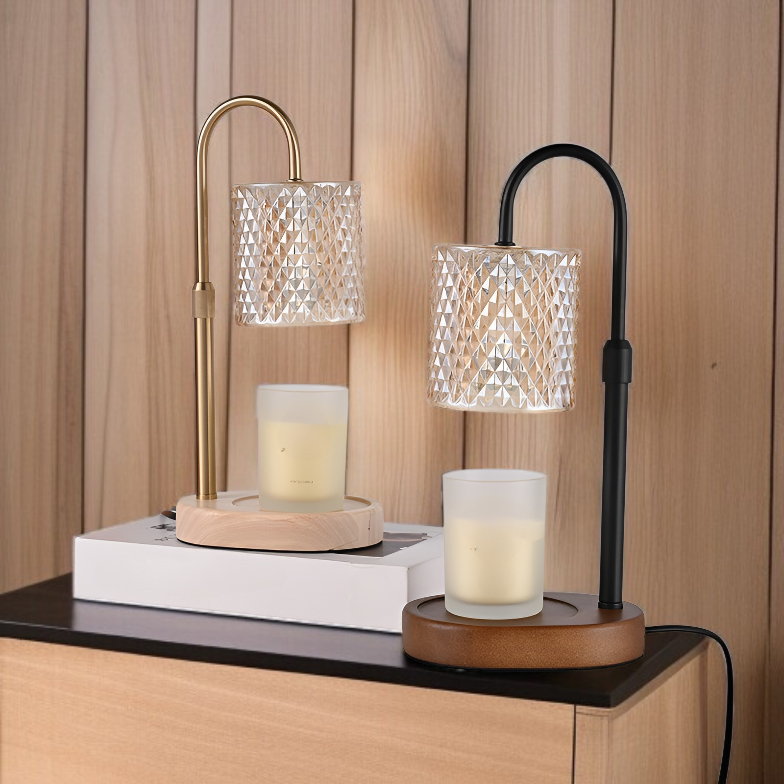 木製アロマセラピーワックスメルティングランプ、時間調整可能な調光ナイトライト、寝室のベッドサイドの装飾、アロマセラピーの小さなテーブルランプ、雰囲気のあるライト