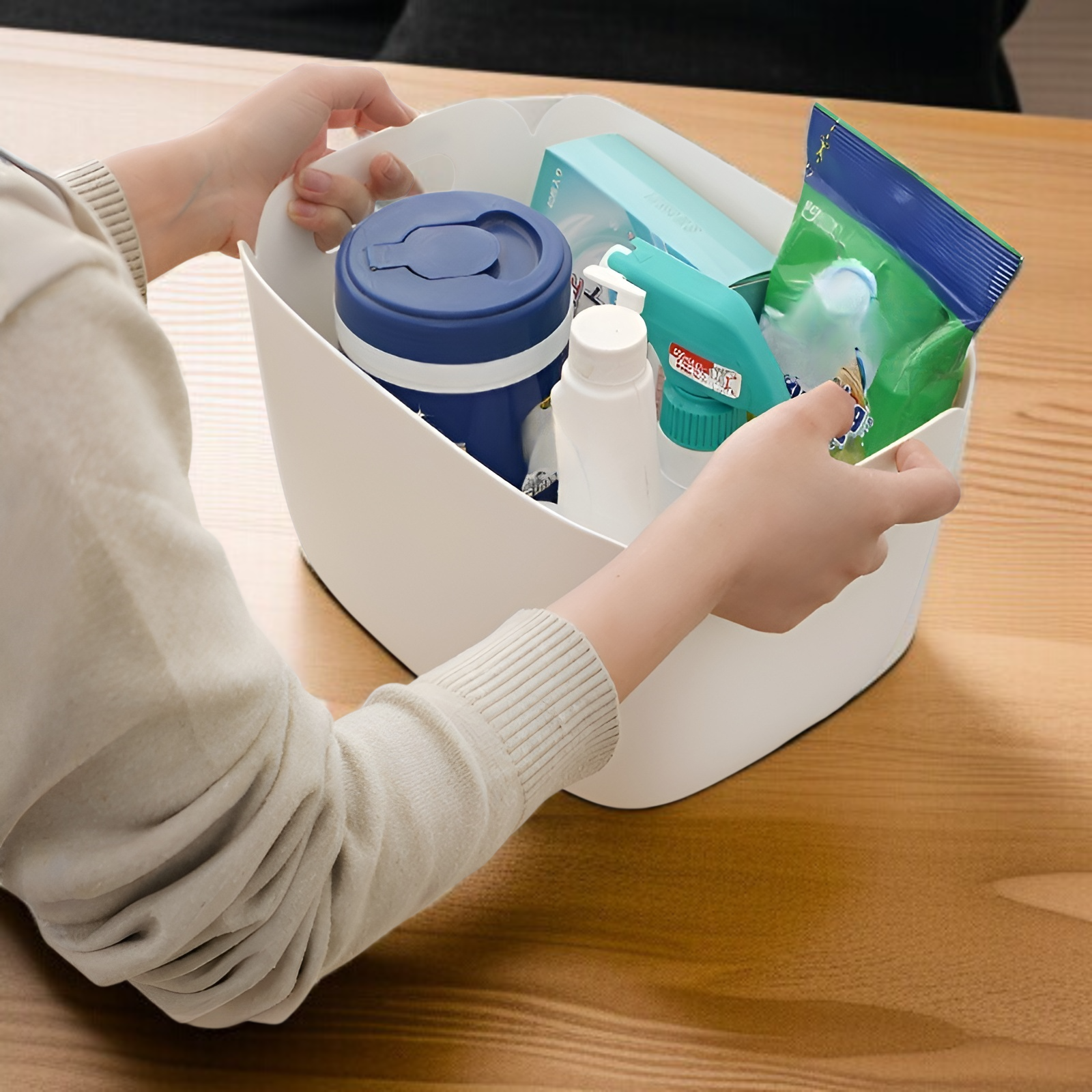 ● ダブルハンドル設計で持ち運びや移動が簡単、洗面台やキッチン、バスルームなど様々な場所で便利に使える収納ボックスです。