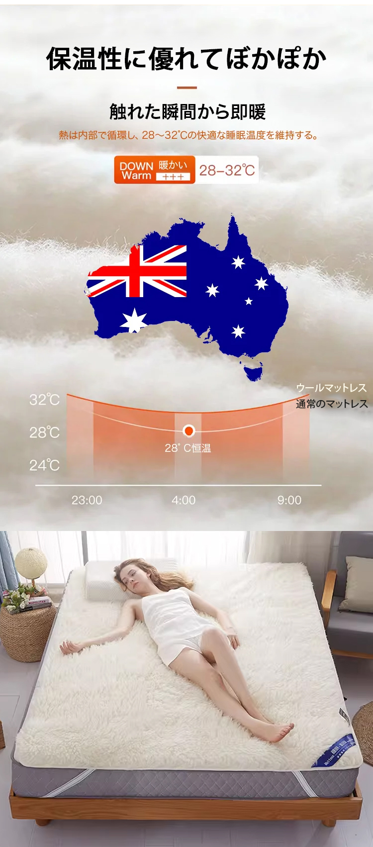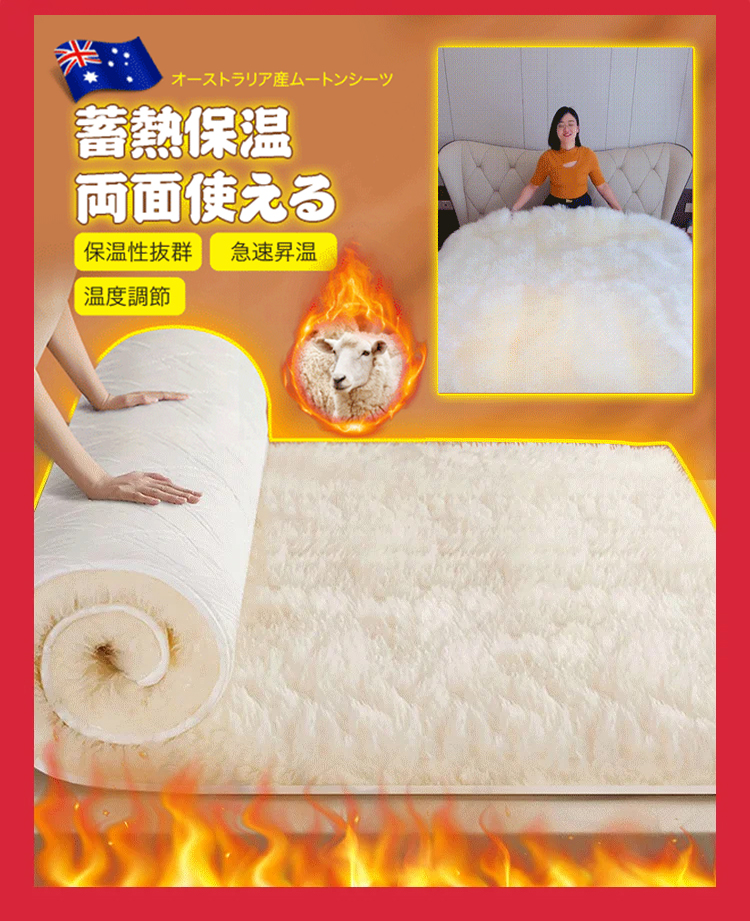 【5秒以内に体感温度が30度に上昇】一枚の羊皮が織りなす、夢の寝心地、一般的なウール敷きパッドより驚異の8倍